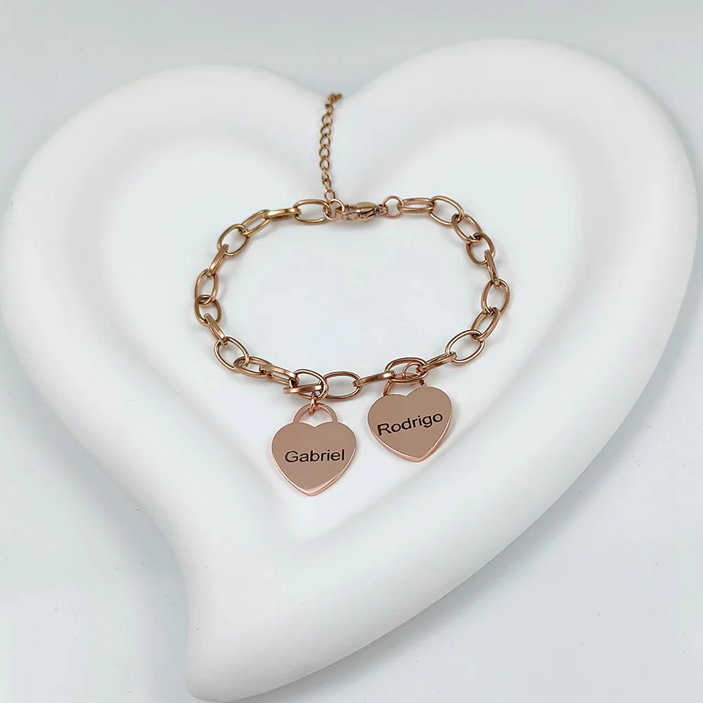 Pour offrir à un être cher ou pour vous-même, notre bracelet est un cadeau élégant et empreint de sens. Chaque cœur gravé avec un prénom ou un motif représente une personne chère dans votre vie, symbolisant l'amour et la force de vos liens familiaux et amicaux.