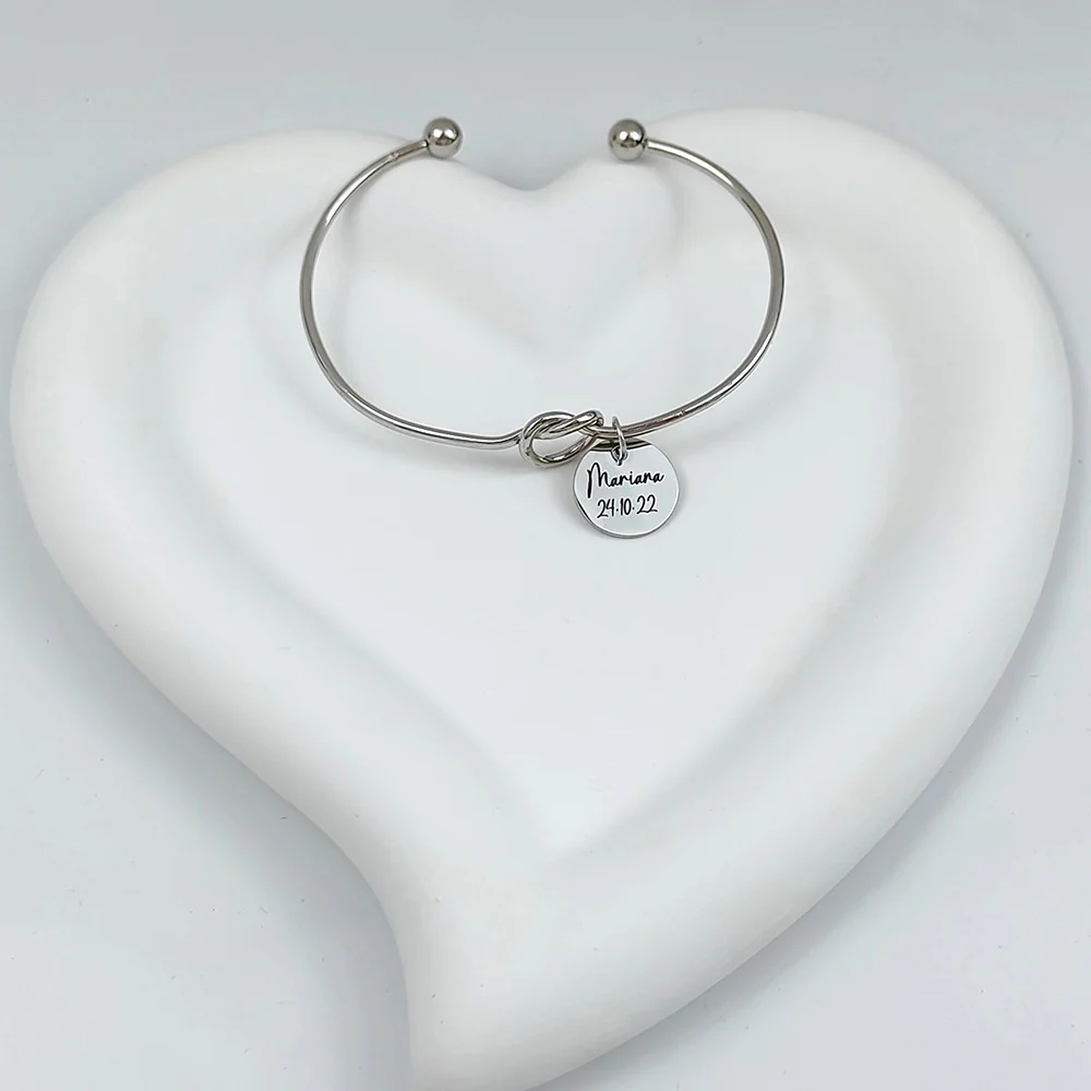 Que ce soit pour offrir à un être cher ou pour vous-même, notre bracelet est un cadeau élégant et empreint de sens. Vous pouvez y inscrire un prénom, un mot d'amour, une date importante ou tout autre message qui vient du cœur. Le message gravé sera un souvenir durable et unique qui rappellera toujours à la personne à quel point elle compte pour vous.