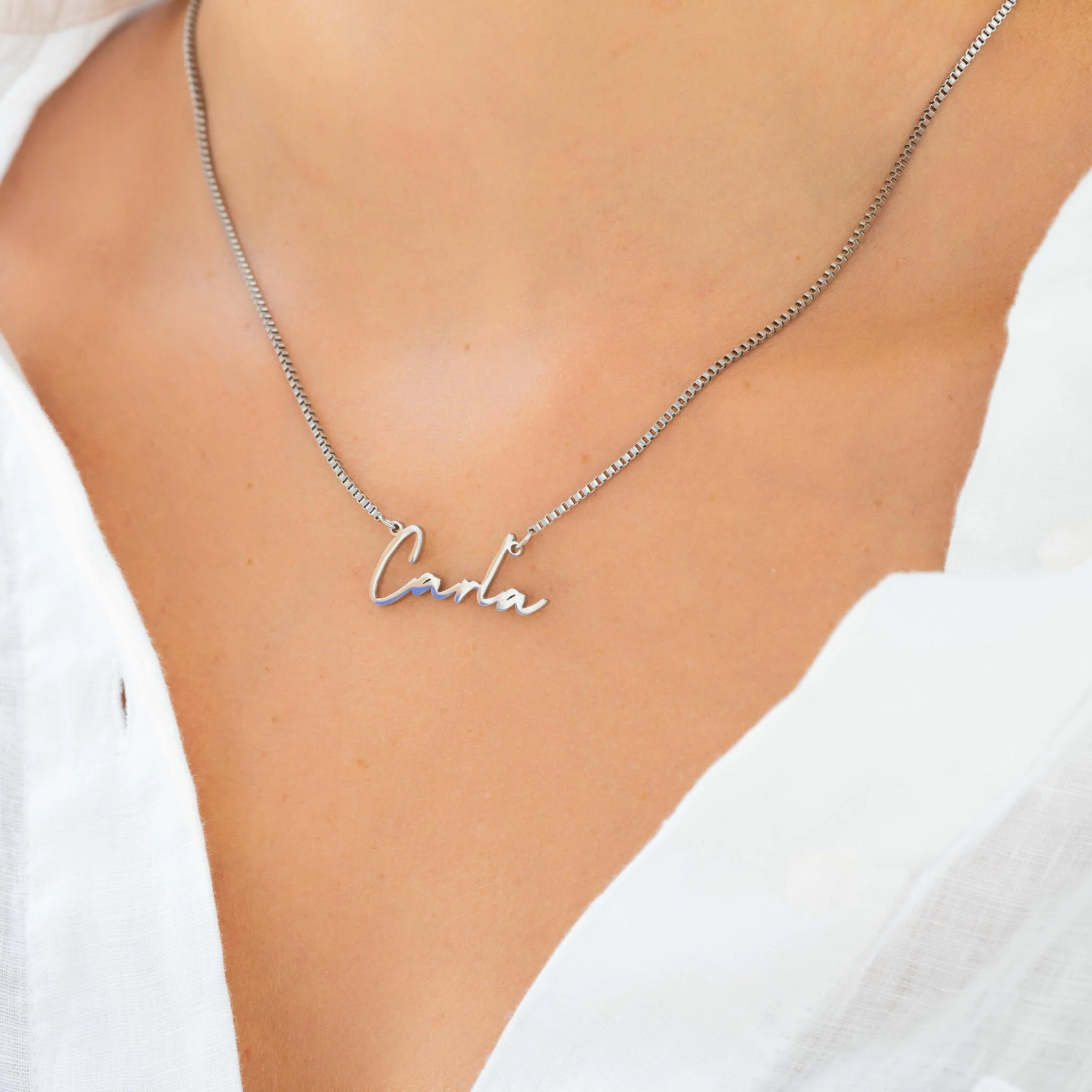 Ce qui rend ce collier vraiment spécial, c'est la possibilité d'y inscrire le prénom ou le mot de votre choix. Imaginez porter près de votre cœur le prénom d'une personne qui a une signification profonde pour vous, qu'il s'agisse de celui d'un être cher, de votre âme sœur ou même du vôtre.