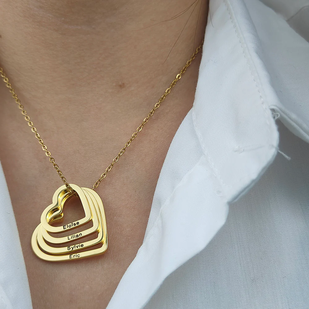 Si vous cherchez un cadeau personnalisé et élégant pour un être cher ou pour vous-même, notre collier personnalisable est un choix parfait. Chaque cœur représente une personne importante dans votre vie et les cœurs sont unis pour symboliser l'amour et la force de votre famille et de vos amis.