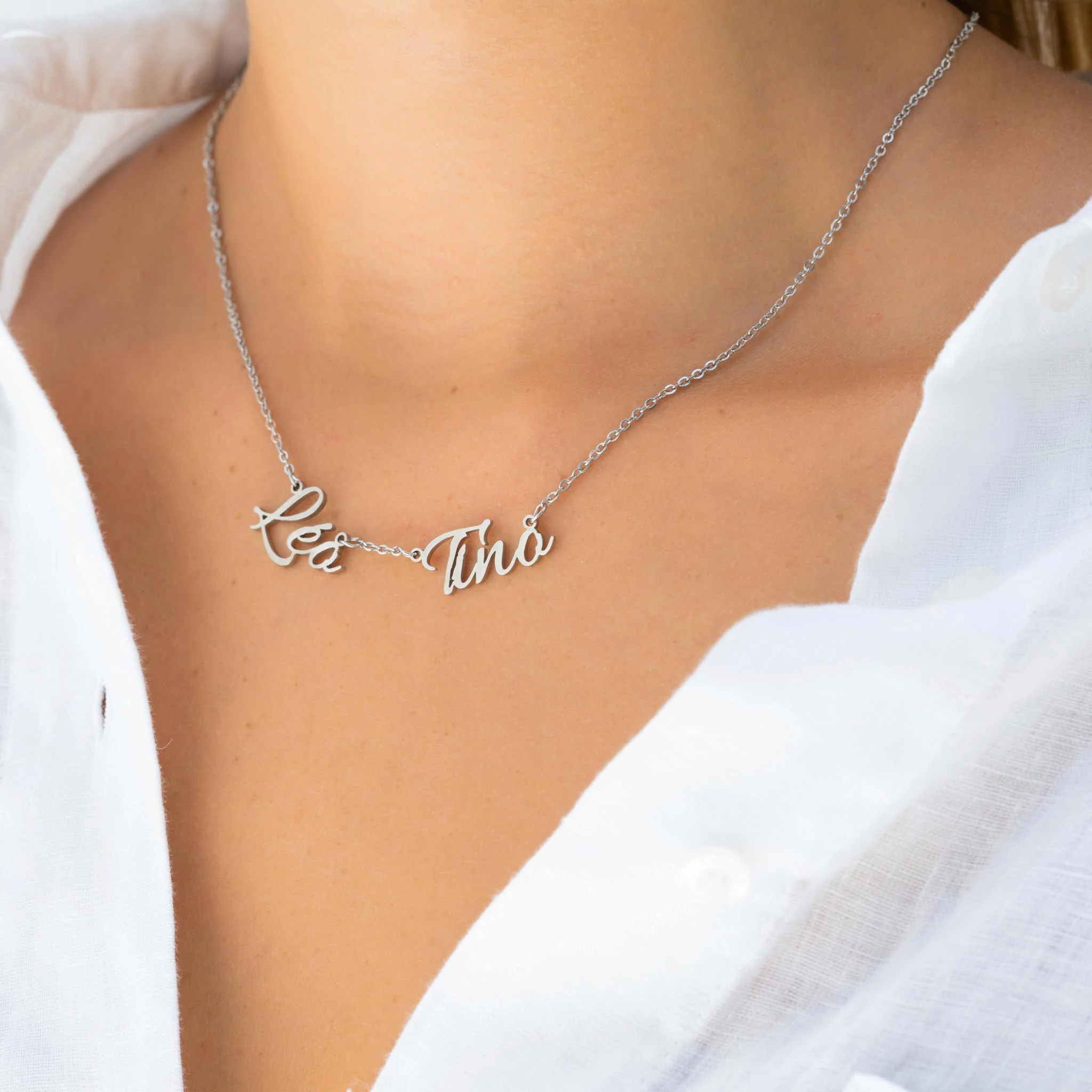 Découvrez notre magnifique collier personnalisable conçu avec amour, où les prénoms de vos êtres chers prennent place. Cette pièce unique vous permet de garder vos proches toujours près de votre cœur, même lorsque vous êtes loin d'eux.