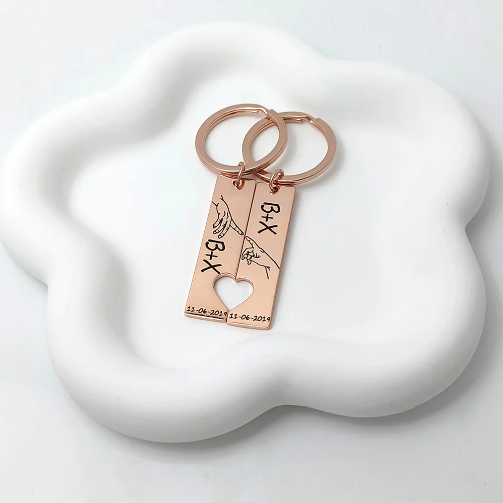 Capturez vos souvenirs les plus chers avec nos porte-clés personnalisés. Sélectionnez une date spéciale et ajoutez votre touche personnelle avec des prénoms, des initiales ou des mots d'amour.