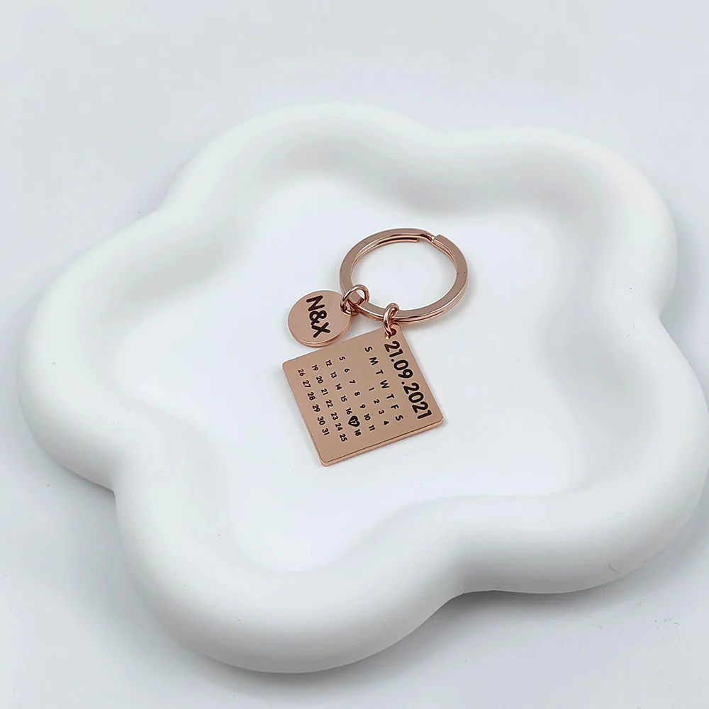 Capturez vos souvenirs les plus chers avec notre porte-clés personnalisé. Sélectionnez une date spéciale et ajoutez votre touche personnelle avec un prénom, des initiales ou un mot d'amour.